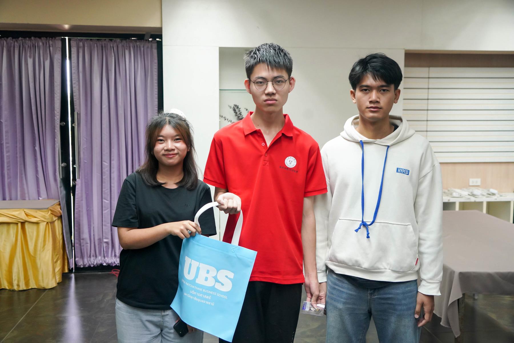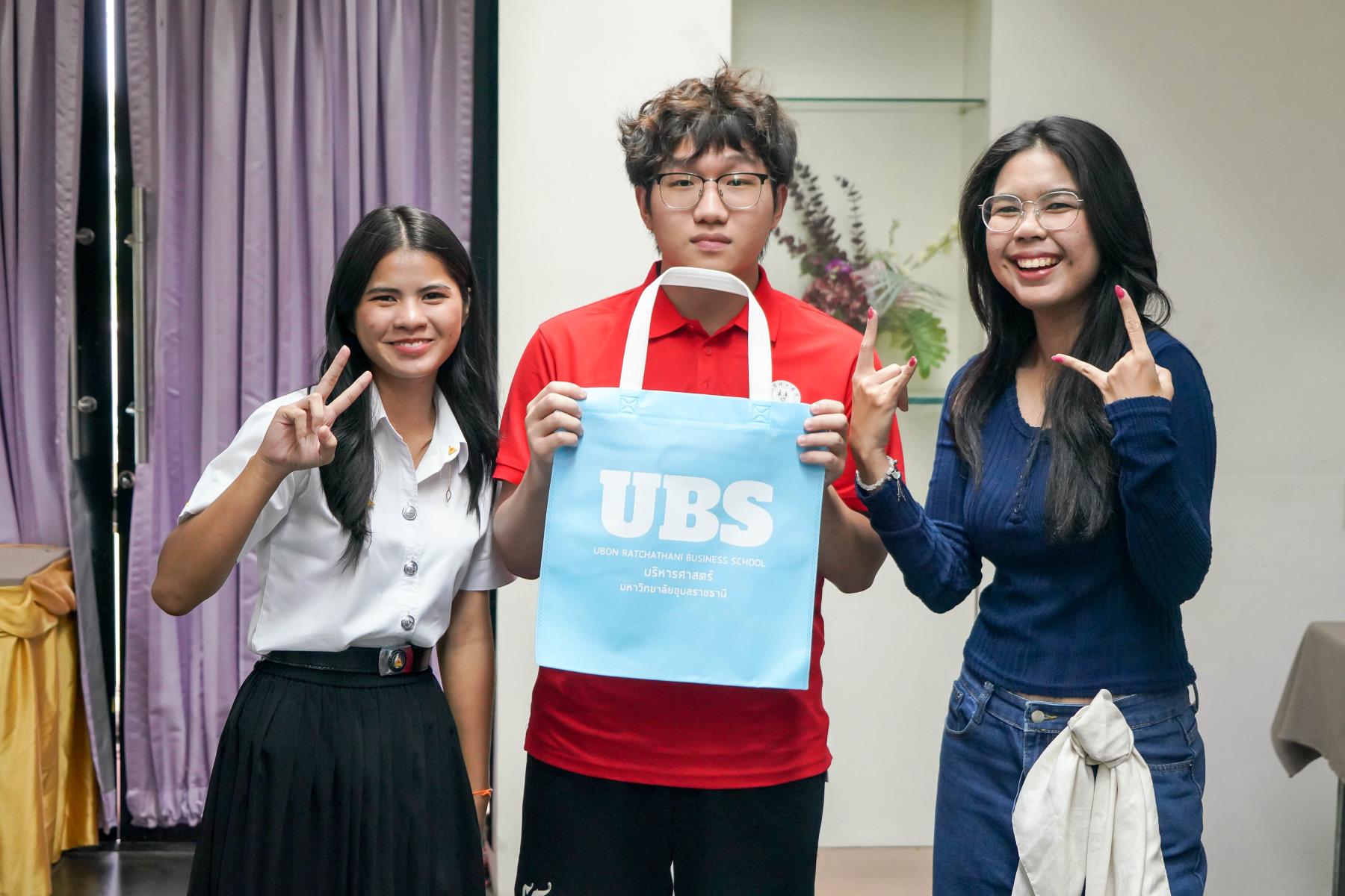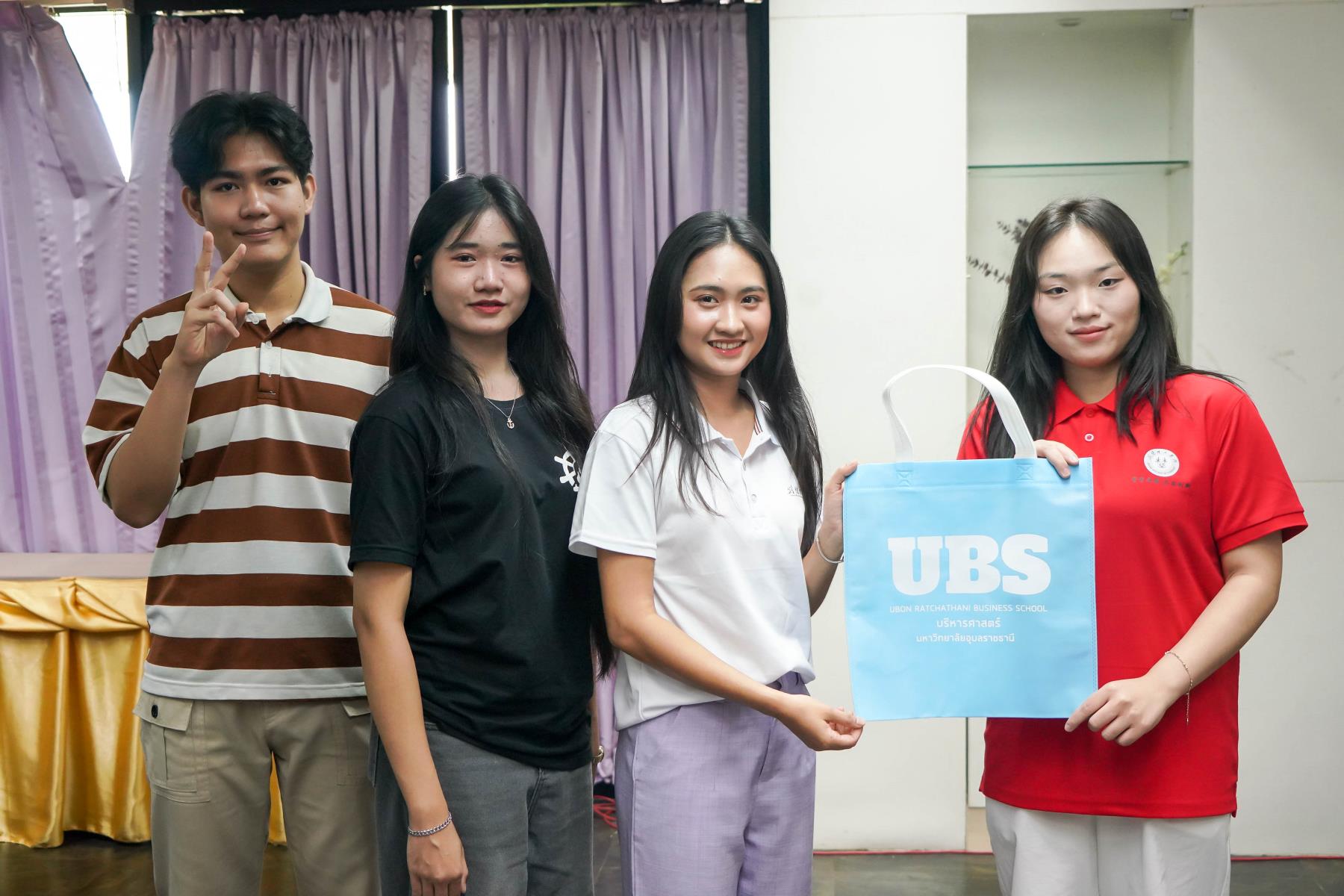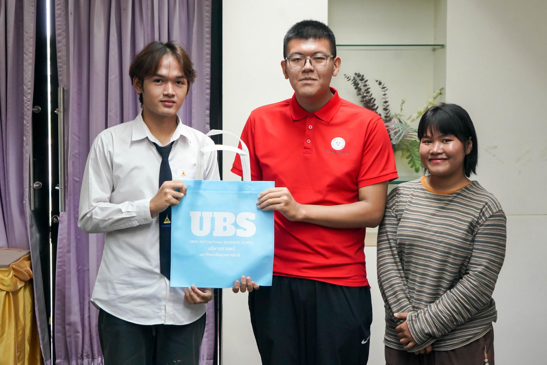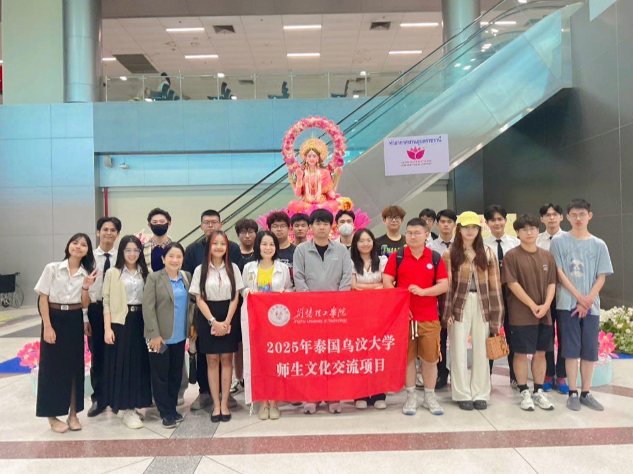 เวลา 08.10 น. ณ สนามบินนานาชาติอุบลราชธานี ดร.สายรุ้ง สังวาลย์ ผู้ช่วยคณบดีฝ่ายสื่อสารองค์กรและกิจการต่างประเทศ และ นางสุประวีณ์ วติวุฒิพงศ์ นักวิชาการศึกษา พร้อมด้วยนักศึกษาสาขาการจัดการธุรกิจระหว่างประเทศ ได้ให้การต้อนรับคณะจากจีนอย่างอบอุ่นทันทีที่เดินทางมาถึง