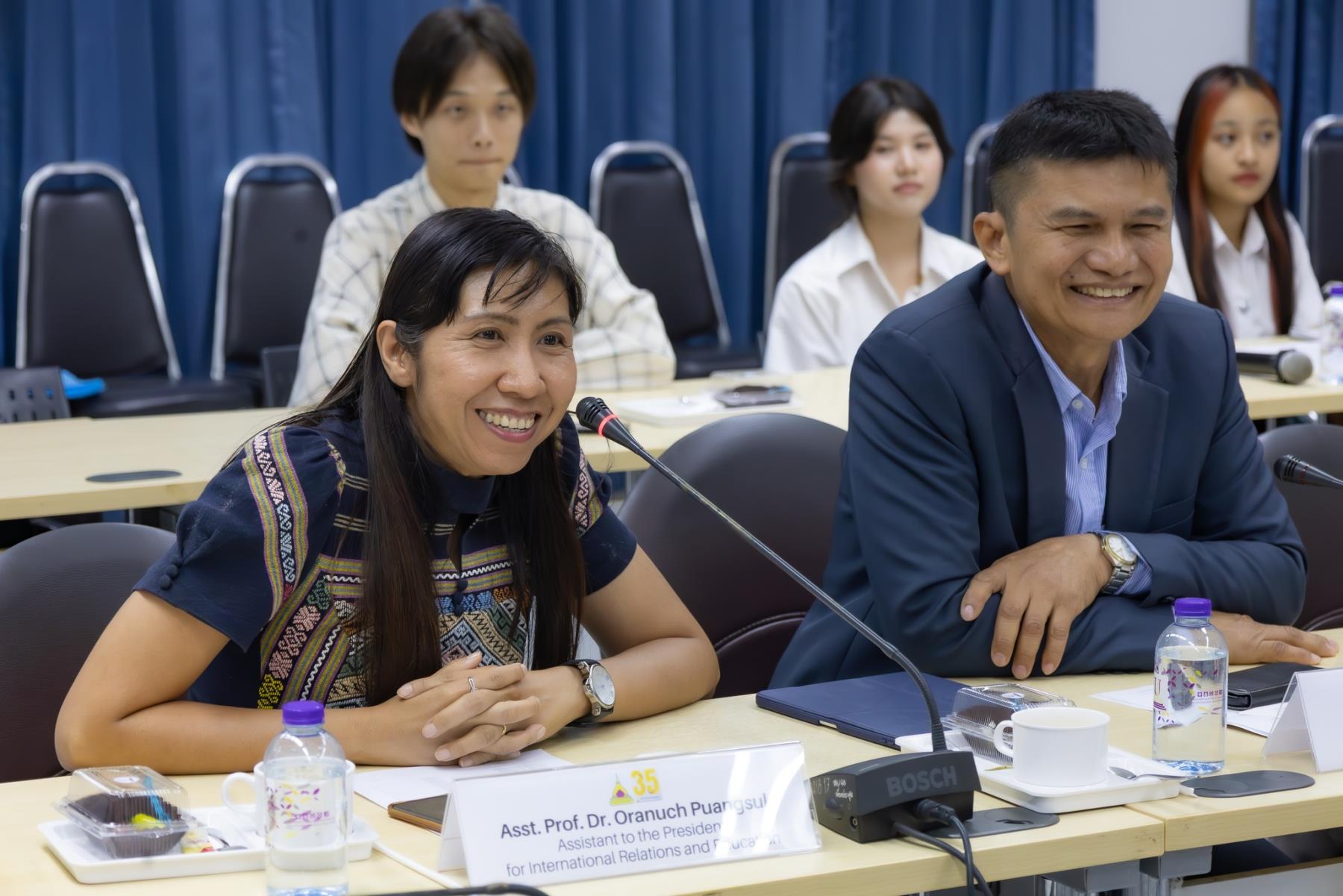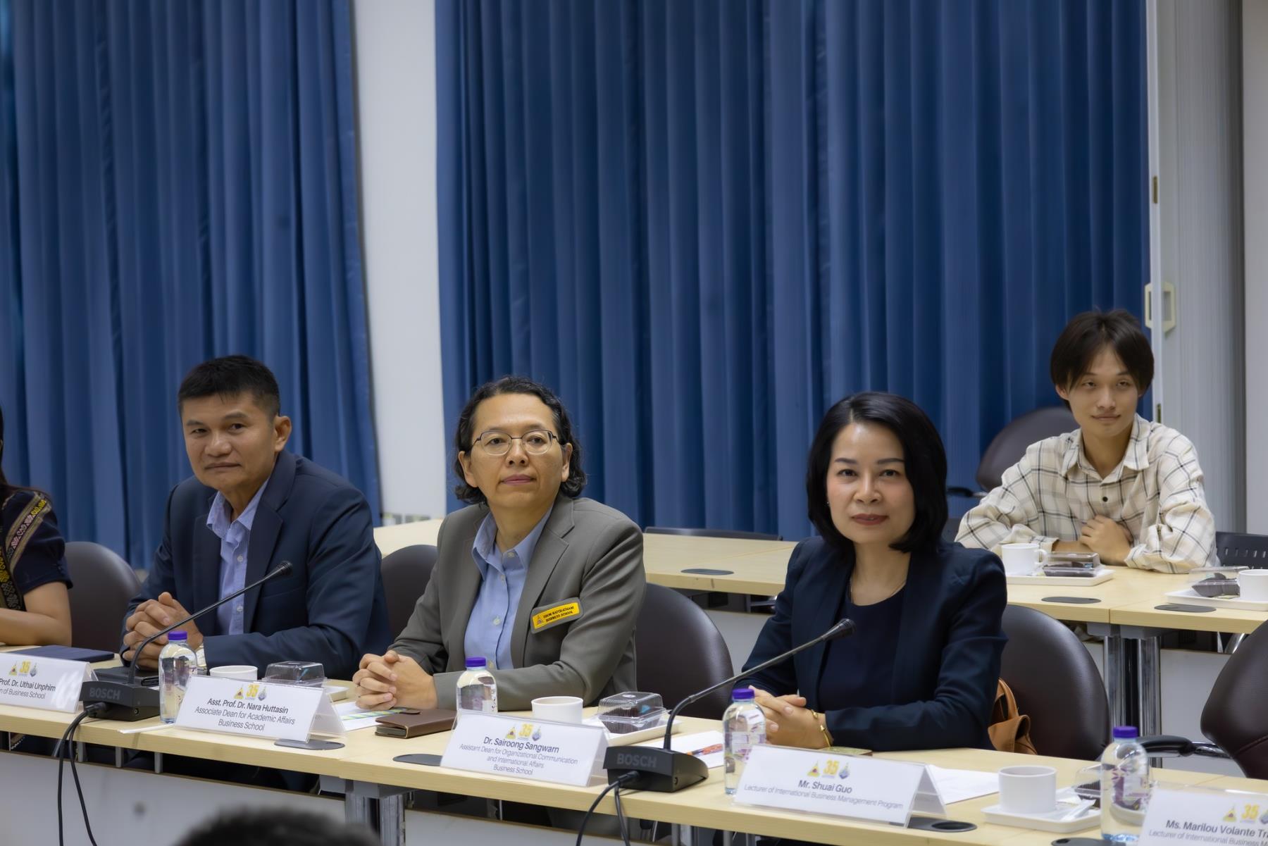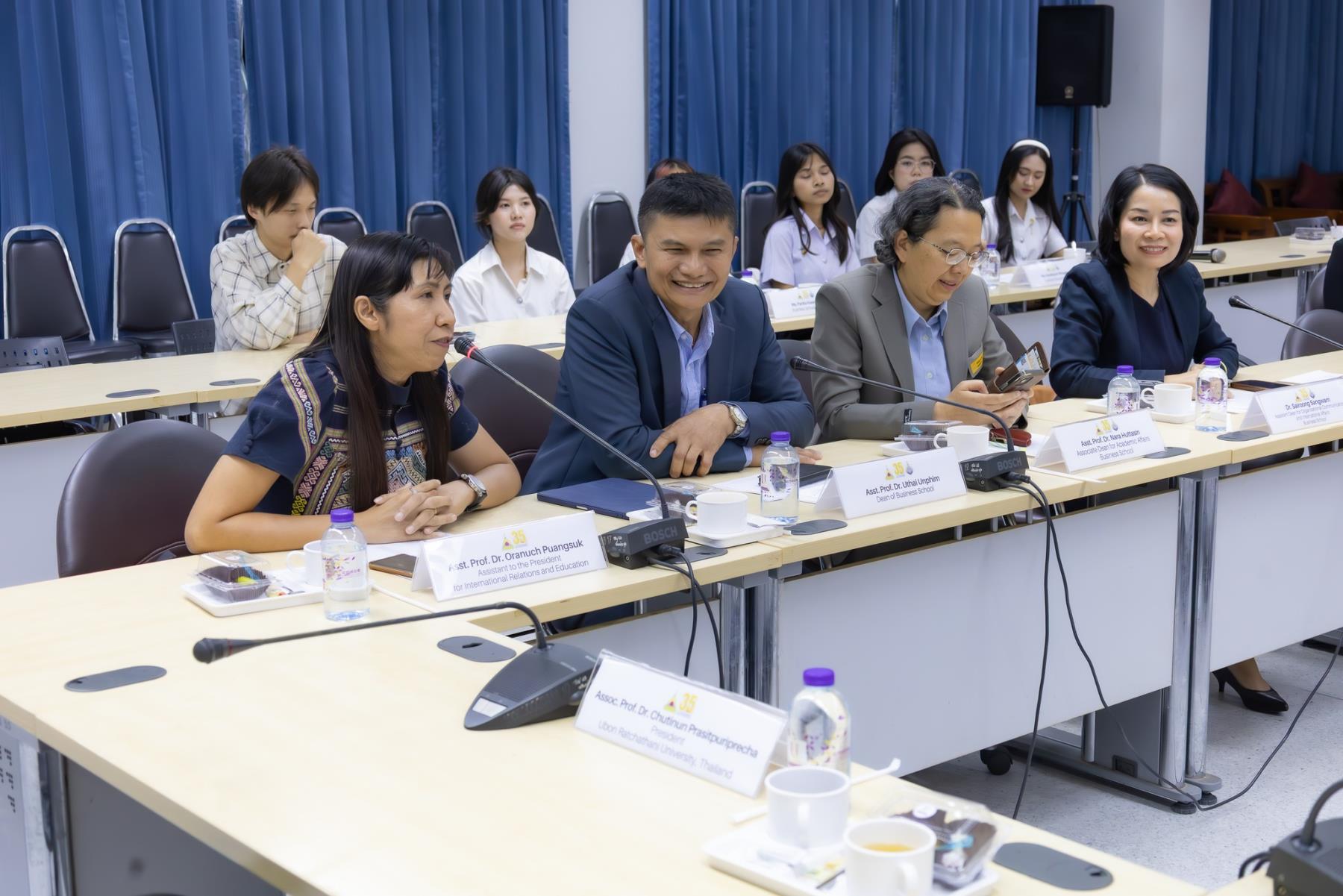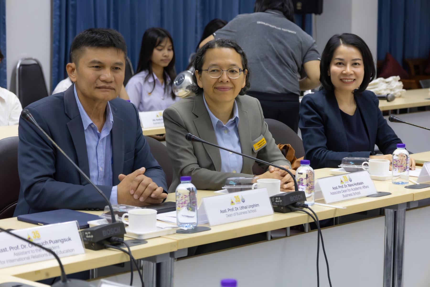 โดยมี รศ.ดร.ชุตินันท์ ประสิทธิ์ภูริปรีชา อธิการบดี ผศ.ดร.อรนุช ปวงสุข ผู้ช่วยอธิการบดีฝ่ายวิเทศสัมพันธ์ ผศ.ดร.อุทัย อันพิมพ์ คณบดีคณะบริหารศาสตร์ พร้อมคณะผู้บริหารและคณาจารย์ ให้การต้อนรับอย่างอบอุ่น