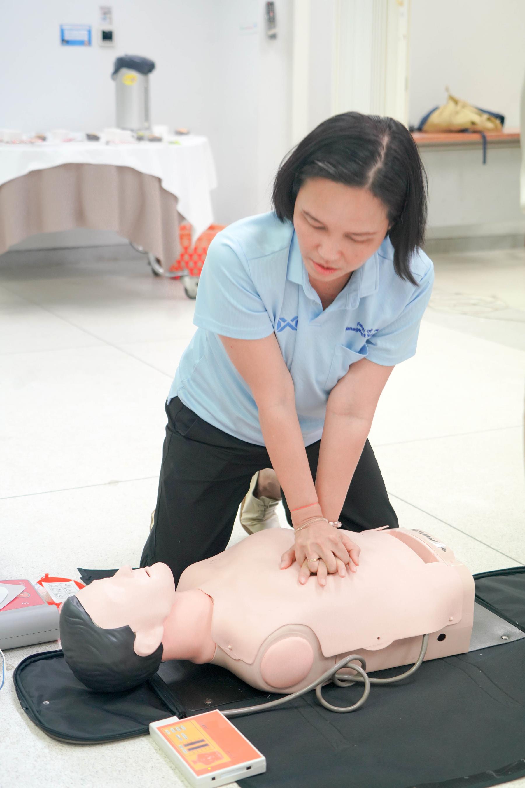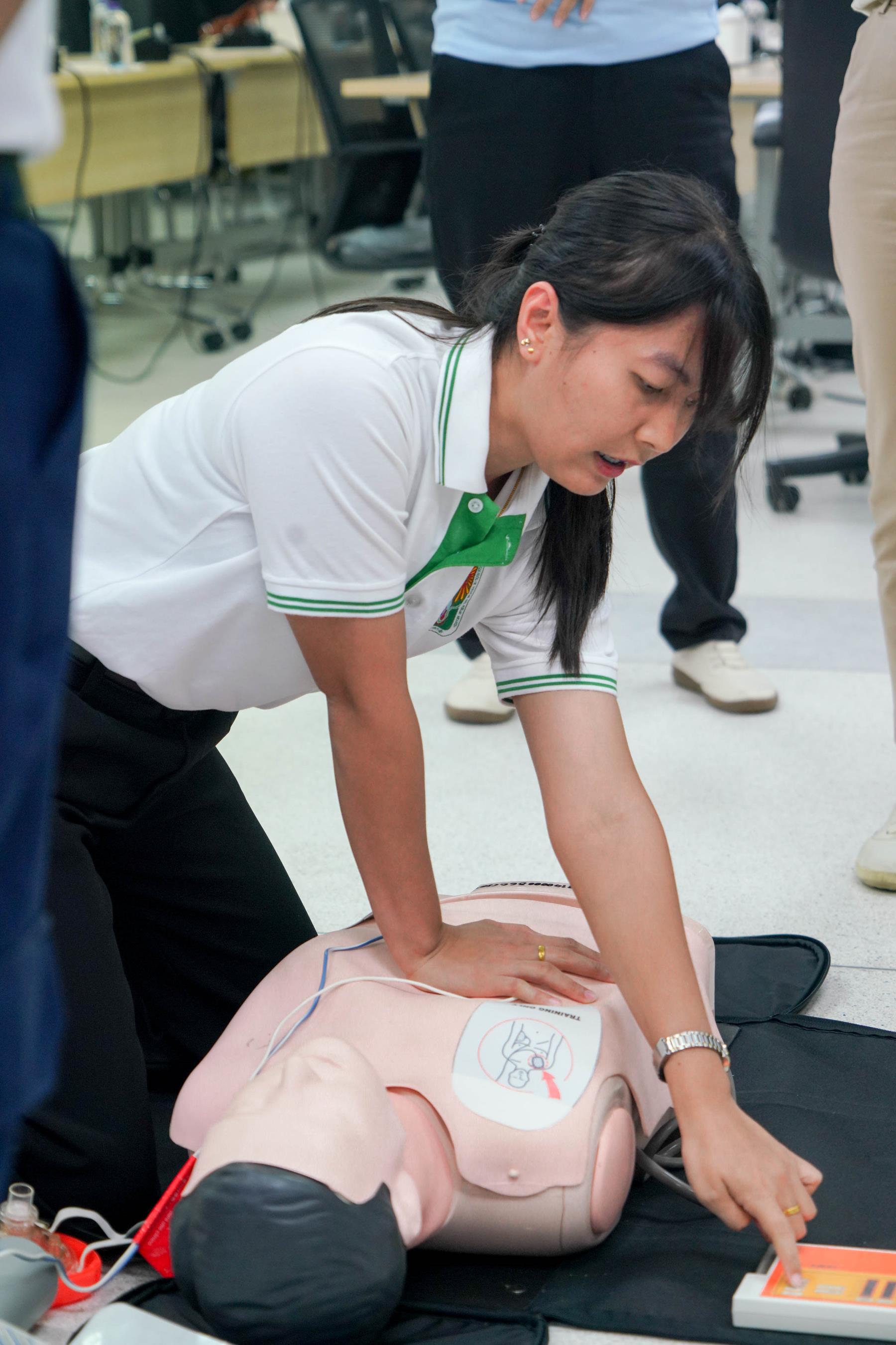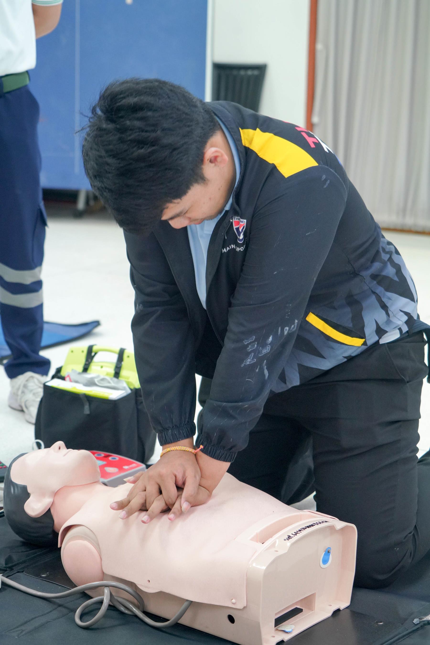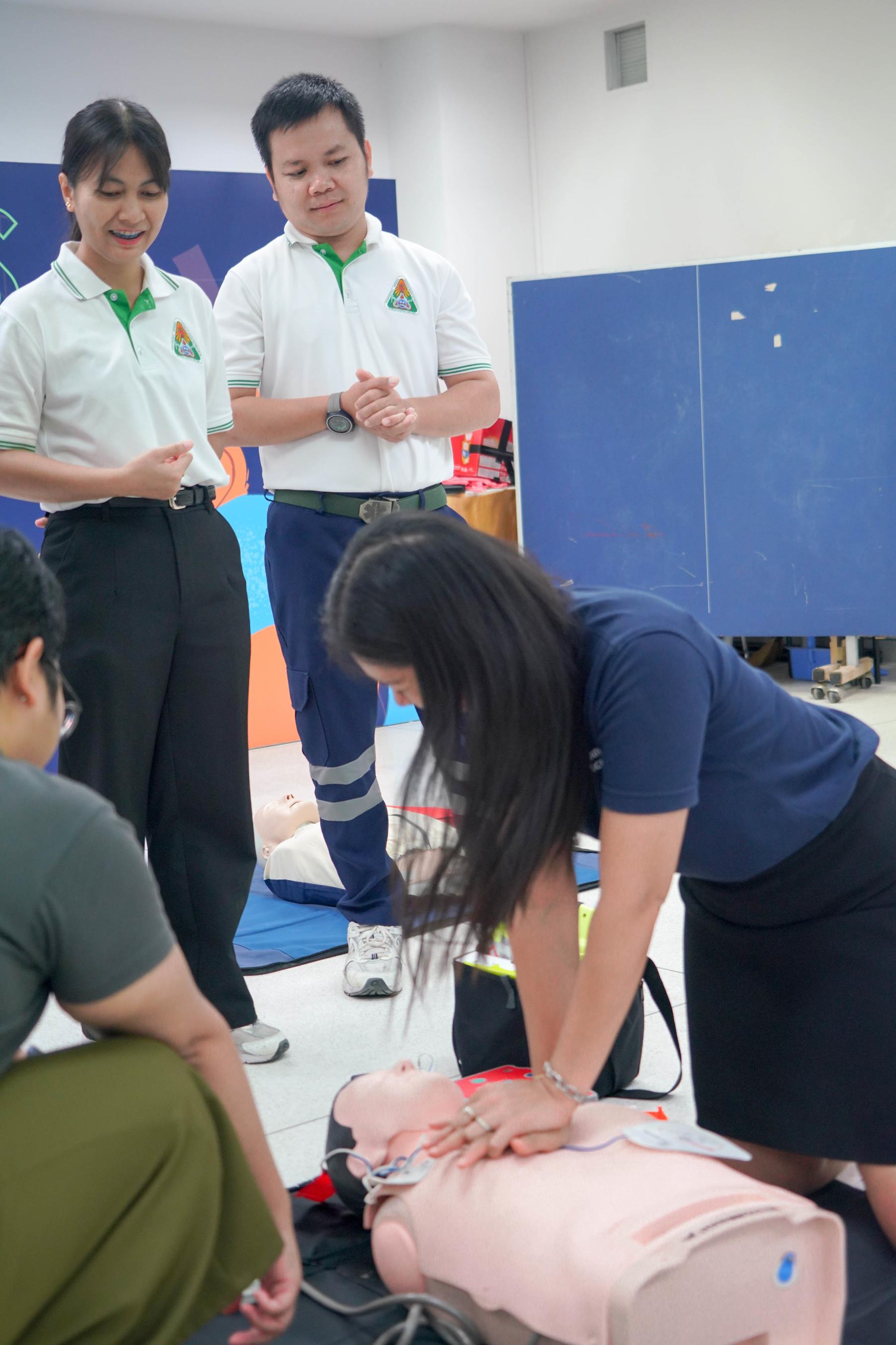 ภายในกิจกรรม ผู้เข้าร่วมได้รับการฝึกปฏิบัติจริงทั้งในด้านการประเมินสถานการณ์ การช่วยเหลือผู้ป่วยหมดสติ การจัดท่าผู้บาดเจ็บ ไปจนถึงการทำ CPR และการใช้เครื่อง AED (เครื่องกระตุกหัวใจไฟฟ้าอัตโนมัติ)
