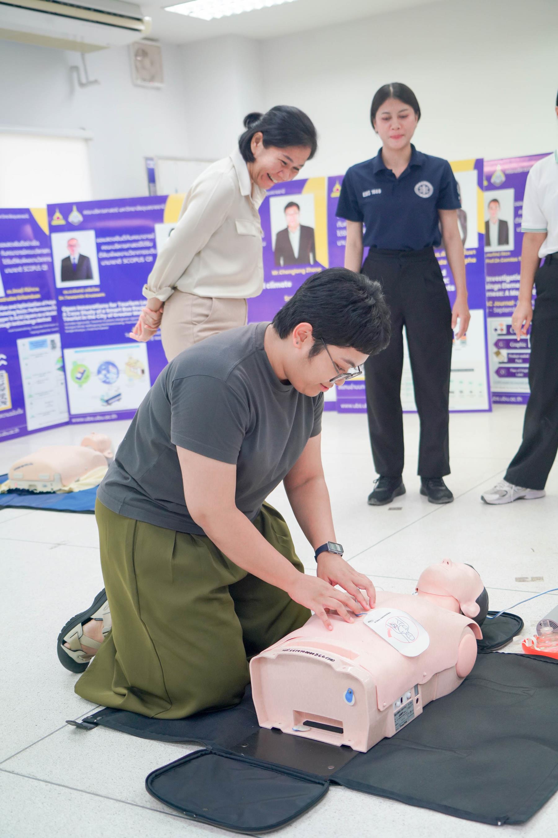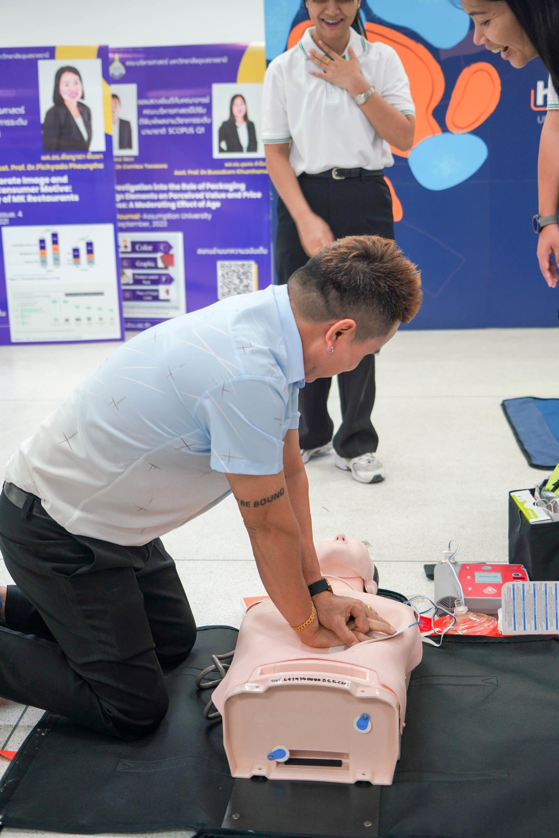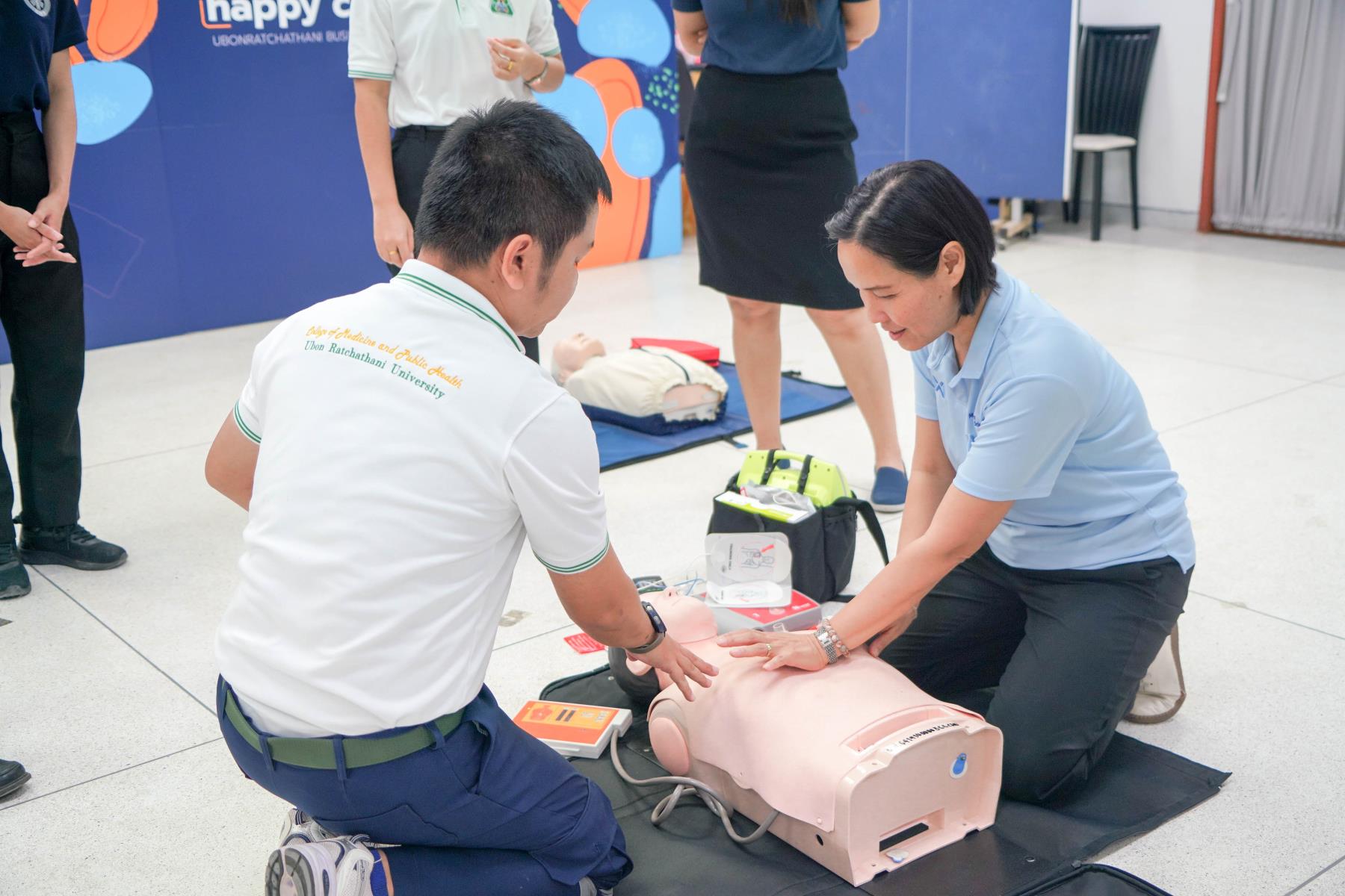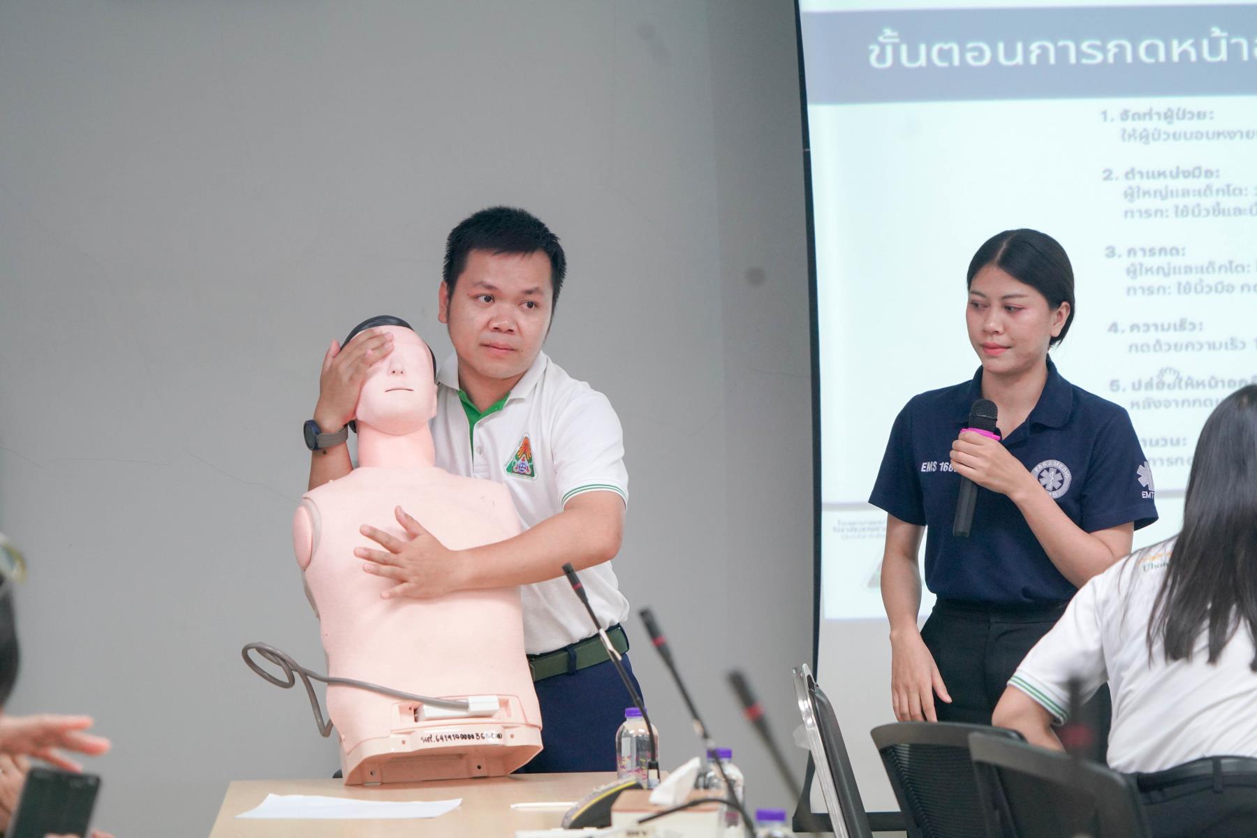 ภายในกิจกรรม ผู้เข้าร่วมได้รับการฝึกปฏิบัติจริงทั้งในด้านการประเมินสถานการณ์ การช่วยเหลือผู้ป่วยหมดสติ การจัดท่าผู้บาดเจ็บ ไปจนถึงการทำ CPR และการใช้เครื่อง AED (เครื่องกระตุกหัวใจไฟฟ้าอัตโนมัติ)