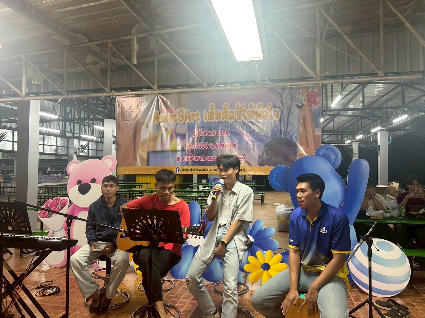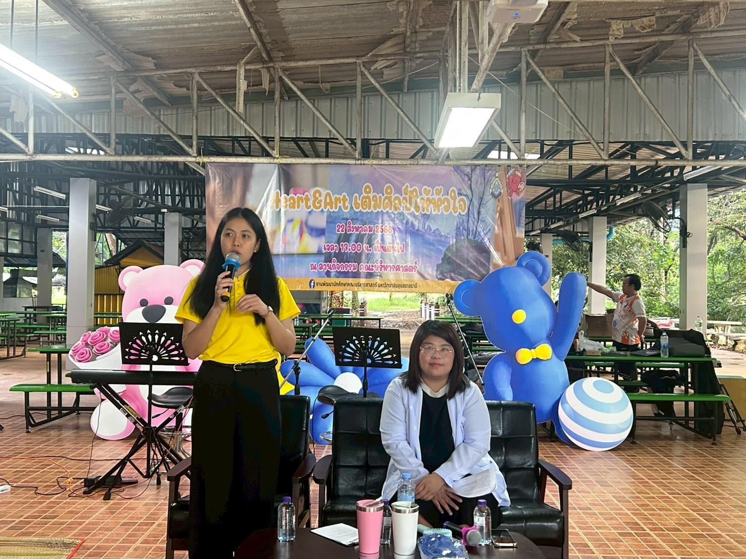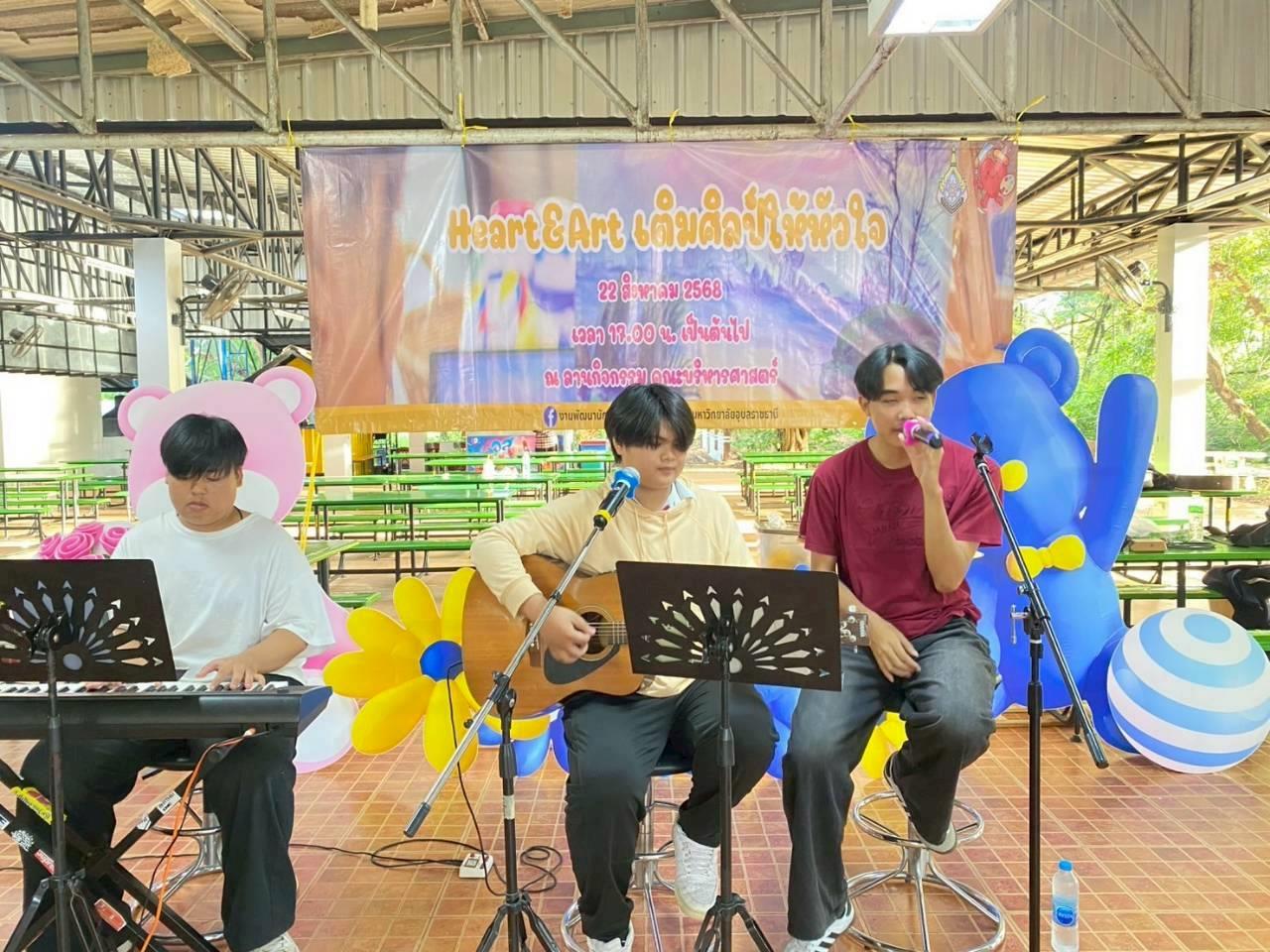เมื่อวันที่ 22 สิงหาคม 2568 งานพัฒนานักศึกษา คณะบริหารศาสตร์ มหาวิทยาลัยอุบลราชธานี นำโดย ผู้ช่วยศาสตราจารย์ ดร.นันทพงษ์ บุญป้อง ผู้ช่วยคณบดีฝ่ายพัฒนานักศึกษา ได้จัดกิจกรรม “Heart & Art : เติมศิลป์ให้หัวใจ” ณ ลานกิจกรรมคณะบริหารศาสตร์