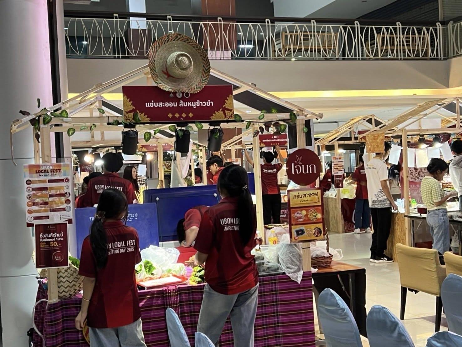 วันที่ 30–31 สิงหาคม 2568 นักศึกษาชั้นปีที่ 4 สาขาการตลาด คณะบริหารศาสตร์ มหาวิทยาลัยอุบลราชธานี จัดงาน “Marketing Day: UBON LOCAL FEST – อีสาน โฮมเฮ้า เล่าสู่โลก” ณ ลานกิจกรรมชั้น 1 ศูนย์การค้าสุนีย์ทาวเวอร์ เพื่อเปิดโอกาสให้นักศึกษาได้ลงมือปฏิบัติจริงในรายวิชา พร้อมสร้างเวทีแสดงศักยภาพด้านการตลาดเชิงสร้างสรรค์และการพัฒนาเศรษฐกิจชุมชน