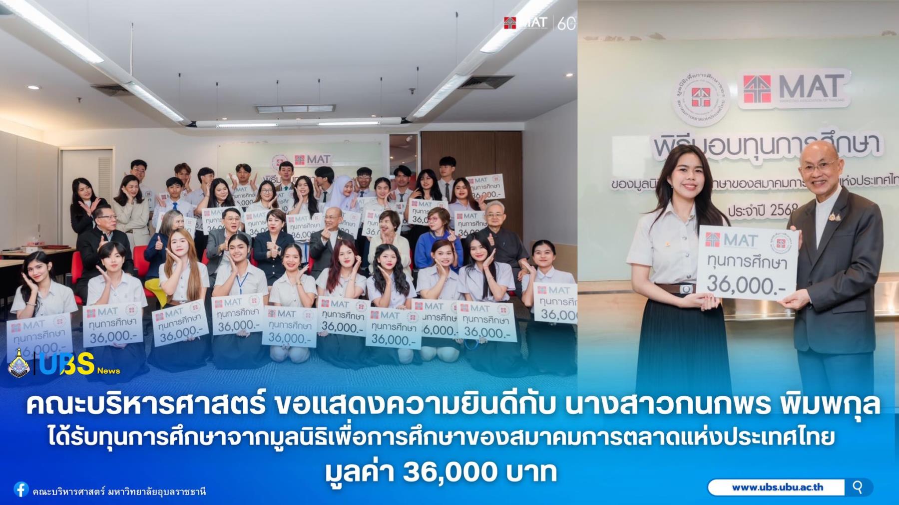 ที่ได้รับ ทุนการศึกษาจากมูลนิธิเพื่อการศึกษาของสมาคมการตลาดแห่งประเทศไทย
