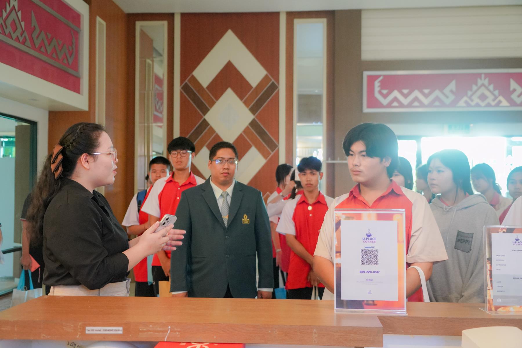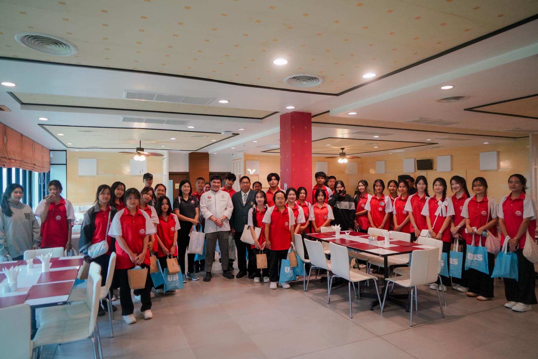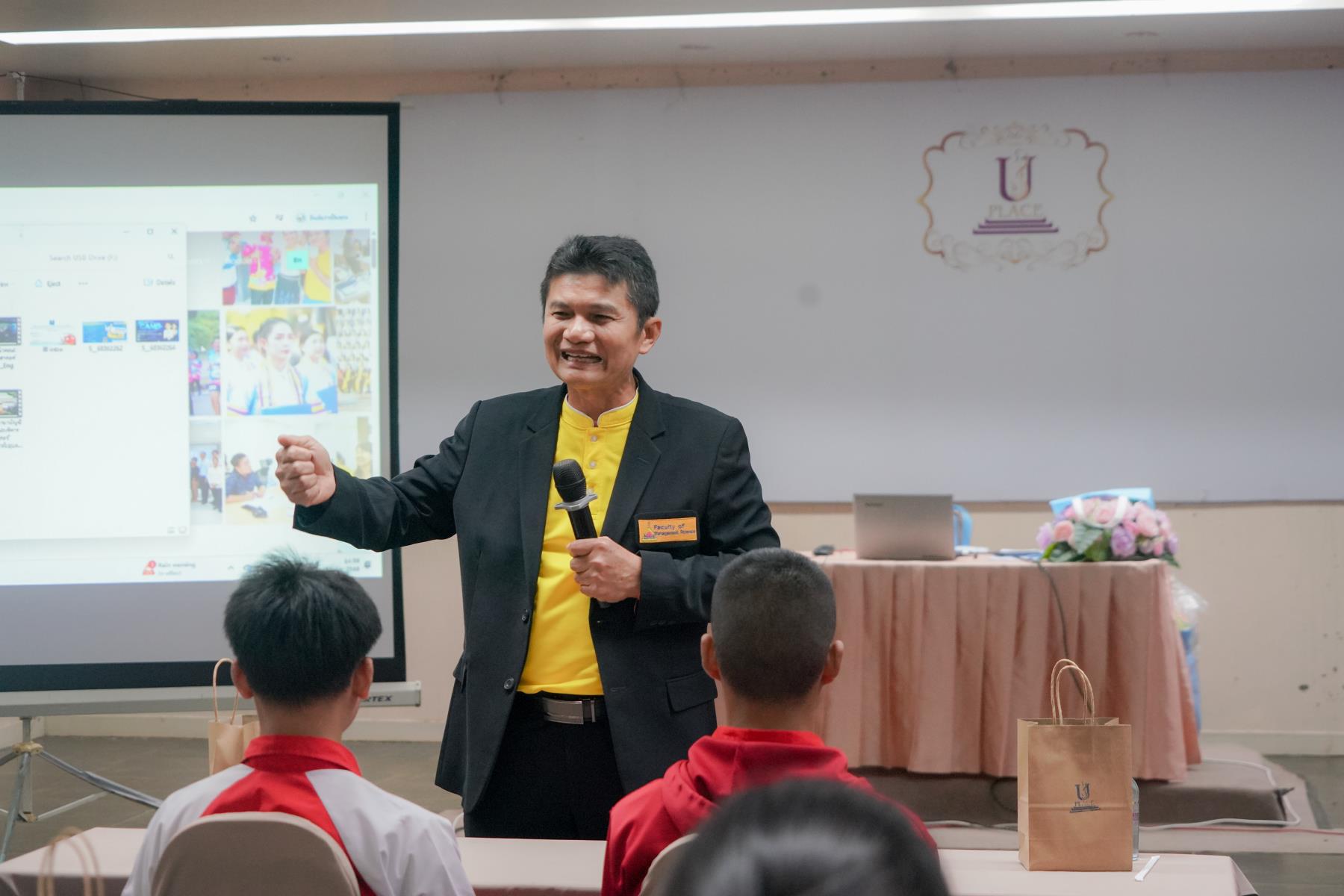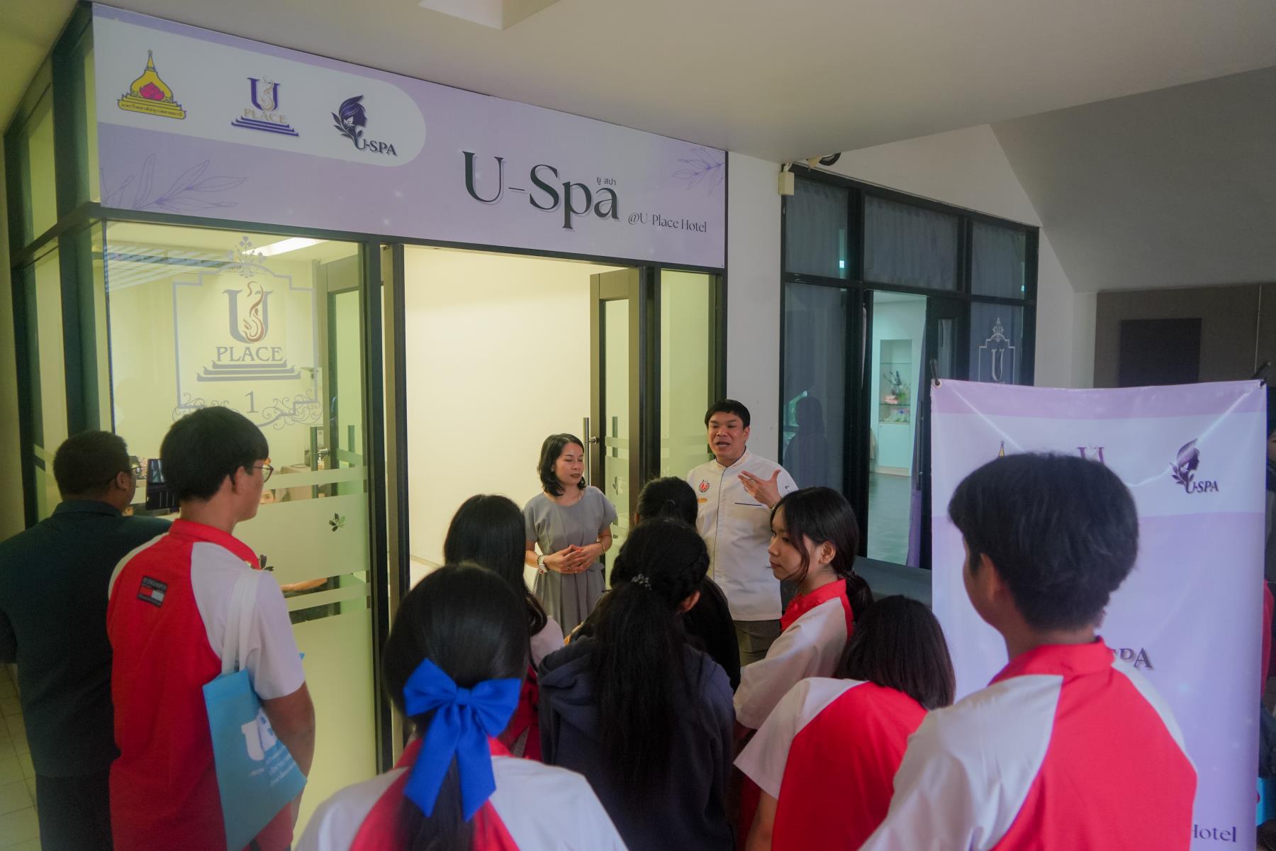 การต้อนรับจัดขึ้น ณ ห้องประชุม U2 โรงแรมยูเพลส มหาวิทยาลัยอุบลราชธานี โดยมี ผู้ช่วยศาสตราจารย์ ดร.อุทัย อันพิมพ์ คณบดีคณะบริหารศาสตร์ และ ดร.สายรุ้ง สังวาลย์ ผู้ช่วยคณบดีฝ่ายสื่อสารองค์กรและกิจการต่างประเทศ เป็นผู้กล่าวต้อนรับ ภายหลังการบรรยายแนะแนว อาจารย์ภูริชญ์ แสนพินิจ นันทะเสน ได้นำคณะครูและนักเรียนเข้าเยี่ยมชม ห้องปฏิบัติการเรียนการสอนและห้องต่าง ๆ ภายในโรงแรมยูเพลส ซึ่งเป็นสถานที่ฝึกปฏิบัติจริงของนักศึกษาสาขานวัตกรรมการจัดการโรงแรมและการบริการ