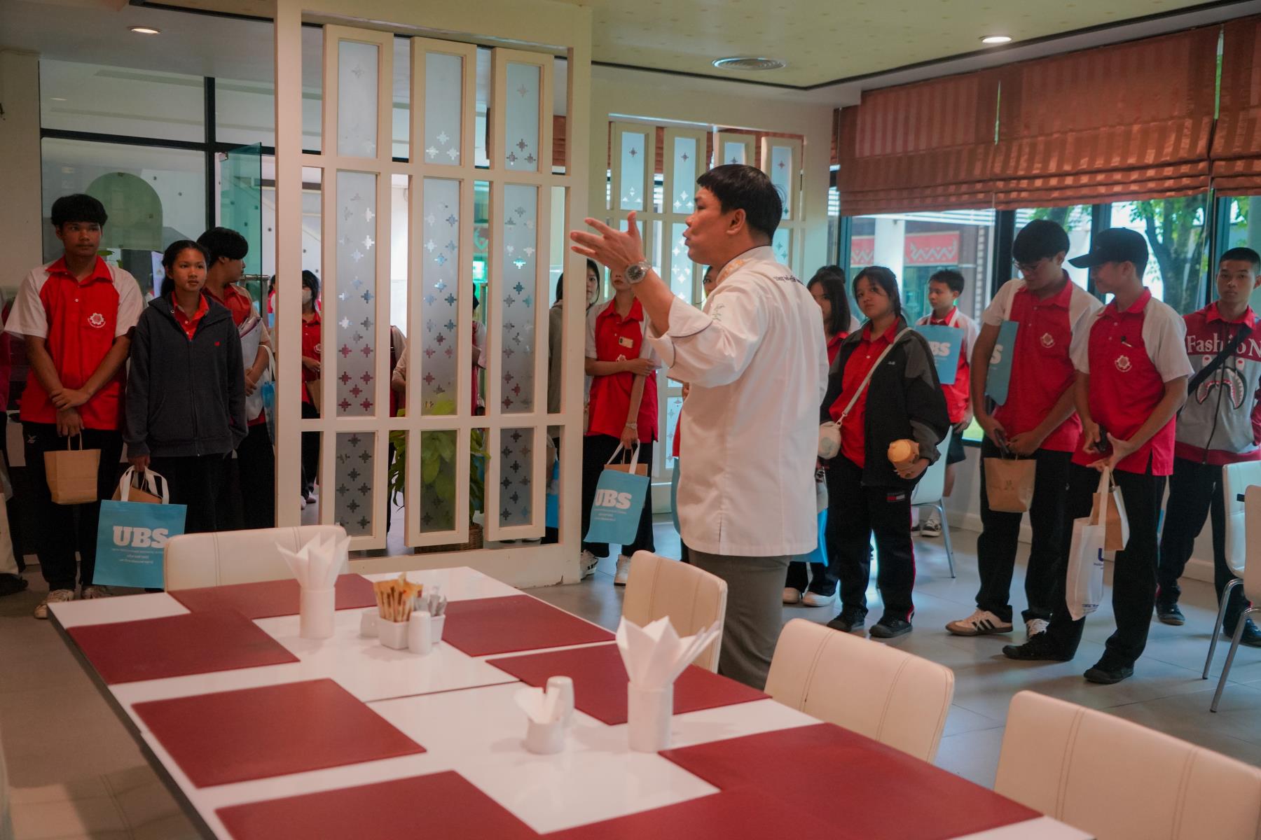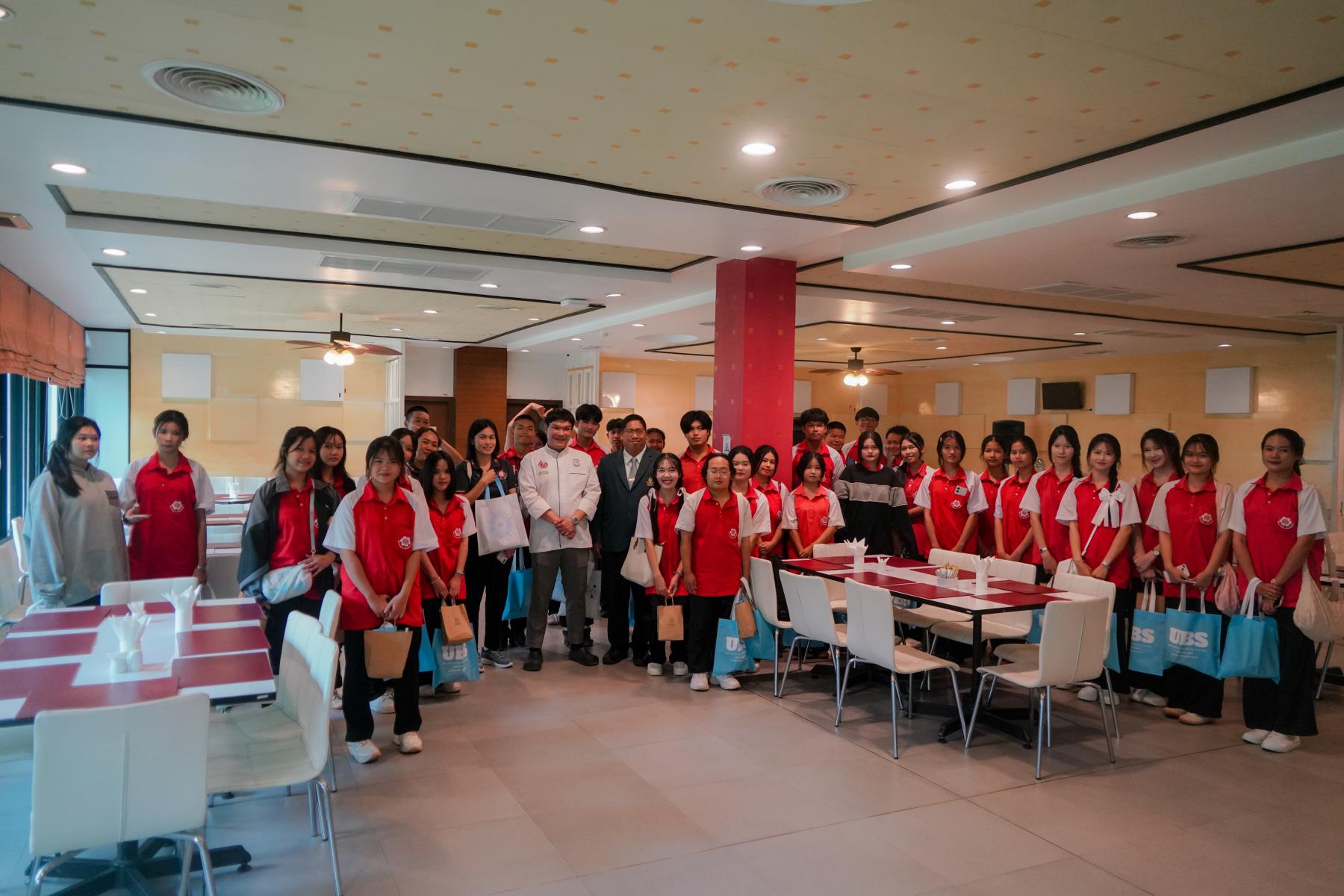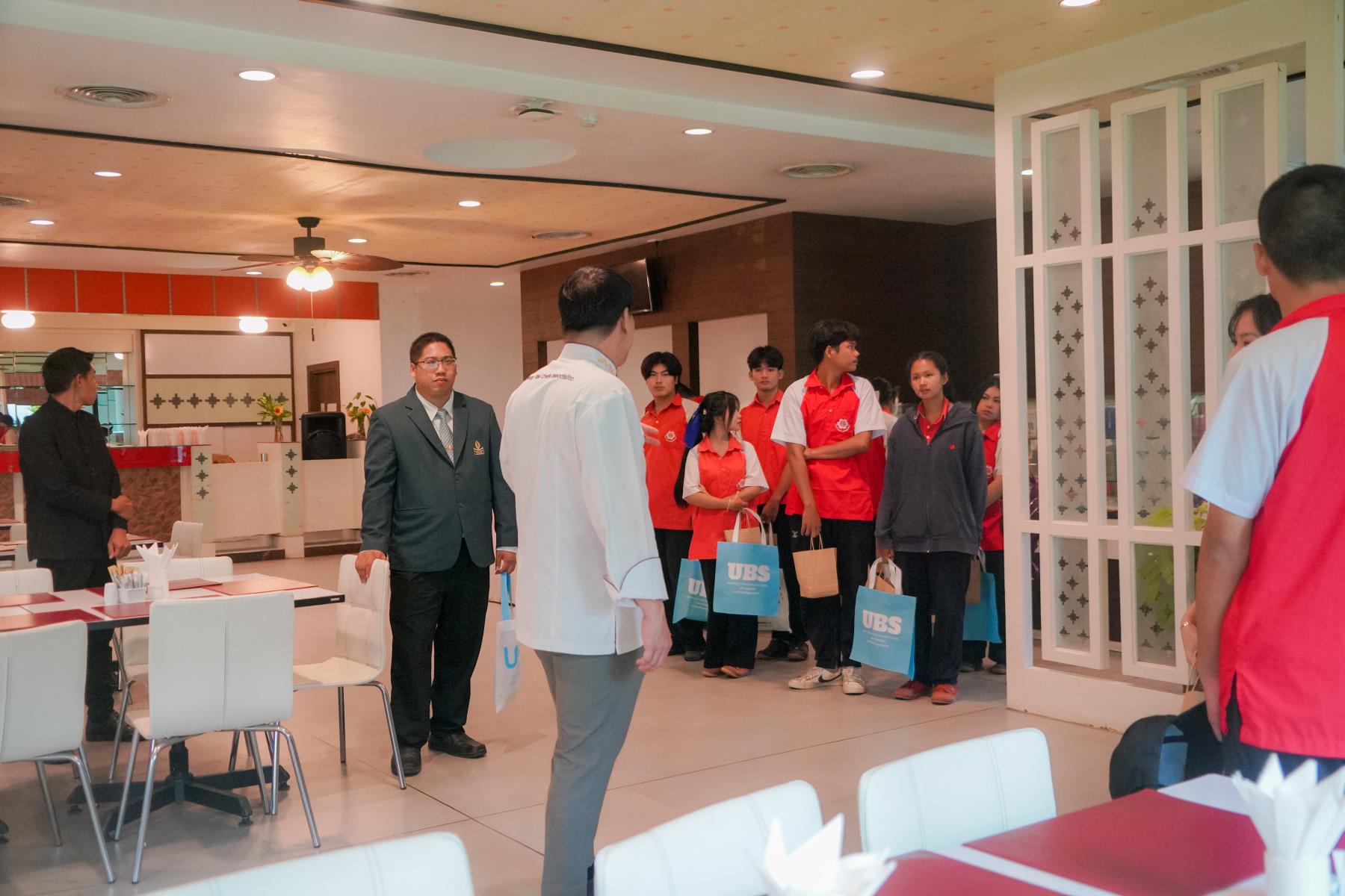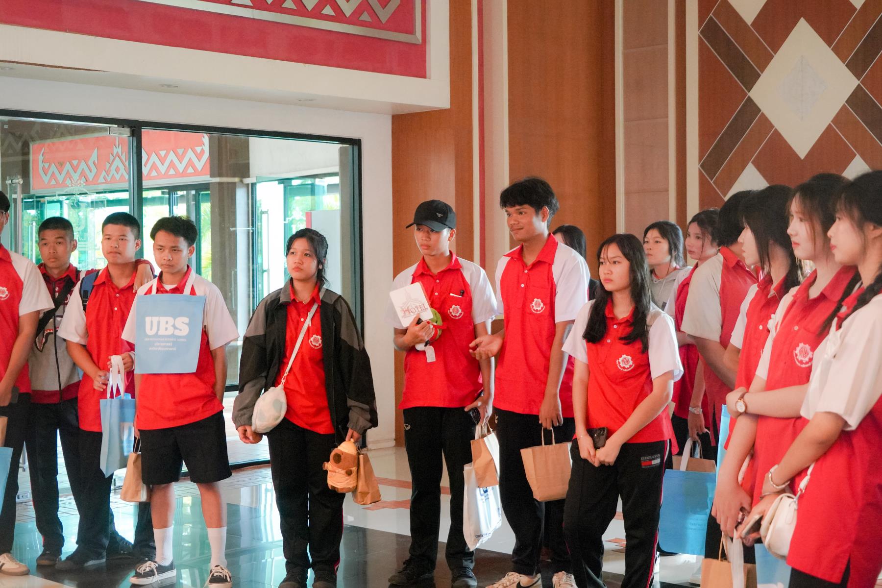 การต้อนรับจัดขึ้น ณ ห้องประชุม U2 โรงแรมยูเพลส มหาวิทยาลัยอุบลราชธานี โดยมี ผู้ช่วยศาสตราจารย์ ดร.อุทัย อันพิมพ์ คณบดีคณะบริหารศาสตร์ และ ดร.สายรุ้ง สังวาลย์ ผู้ช่วยคณบดีฝ่ายสื่อสารองค์กรและกิจการต่างประเทศ เป็นผู้กล่าวต้อนรับ ภายหลังการบรรยายแนะแนว อาจารย์ภูริชญ์ แสนพินิจ นันทะเสน ได้นำคณะครูและนักเรียนเข้าเยี่ยมชม ห้องปฏิบัติการเรียนการสอนและห้องต่าง ๆ ภายในโรงแรมยูเพลส ซึ่งเป็นสถานที่ฝึกปฏิบัติจริงของนักศึกษาสาขานวัตกรรมการจัดการโรงแรมและการบริการ