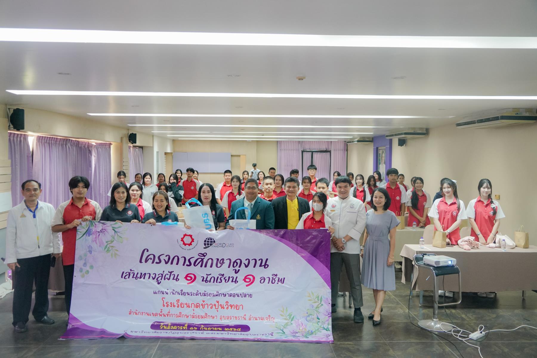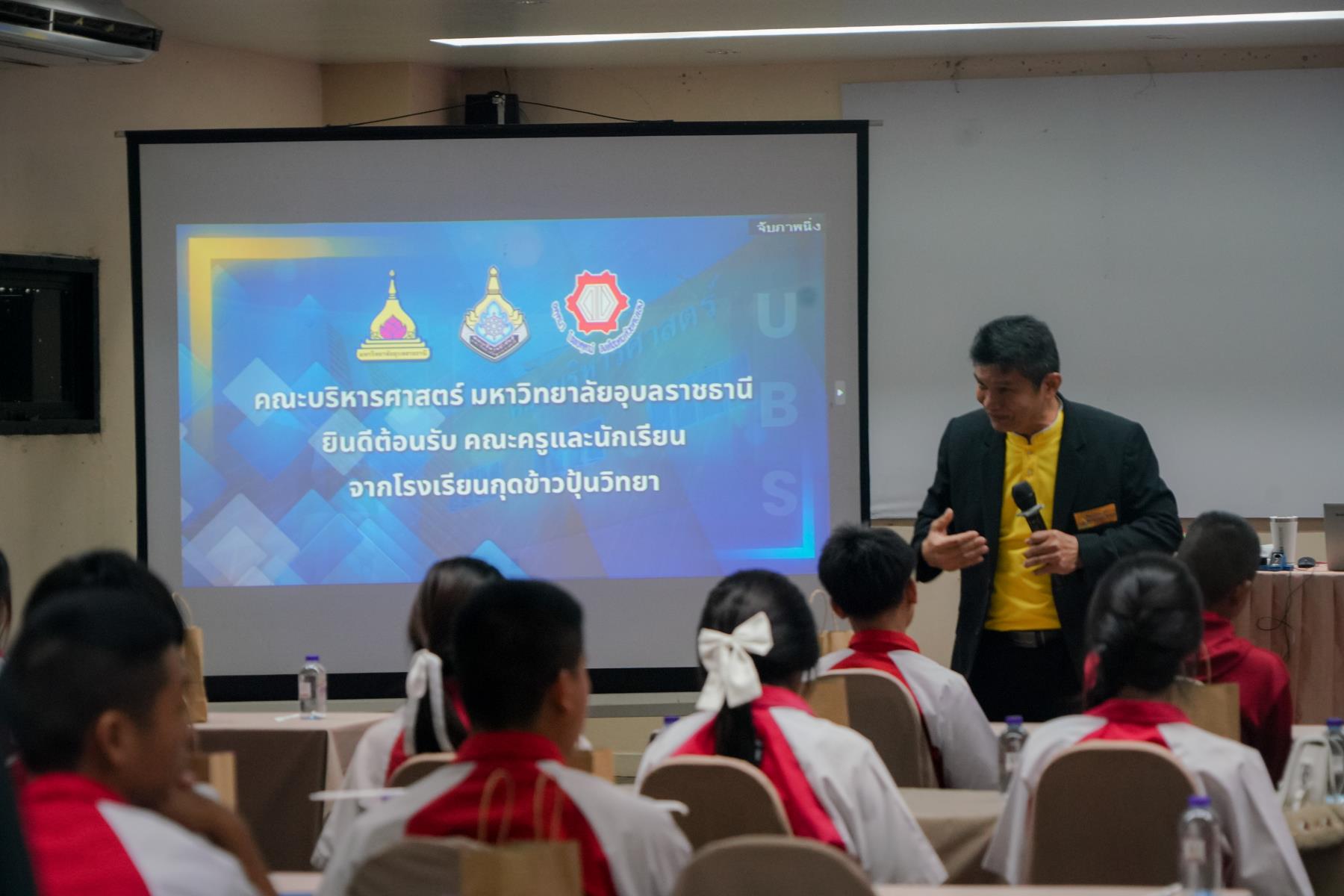 เมื่อวันอังคารที่ 16 กันยายน 2568 คณะบริหารศาสตร์ มหาวิทยาลัยอุบลราชธานี ให้การต้อนรับคณะครูและนักเรียนจาก โรงเรียนกุดข้าวปุ้นวิทยา จังหวัดอุบลราชธานี นำโดย นายวิชิตชัย ใจว่อง รองผู้อำนวยการโรงเรียน ในโอกาสเข้าศึกษาดูงานและรับฟังการแนะแนวการศึกษาต่อในคณะบริหารศาสตร์