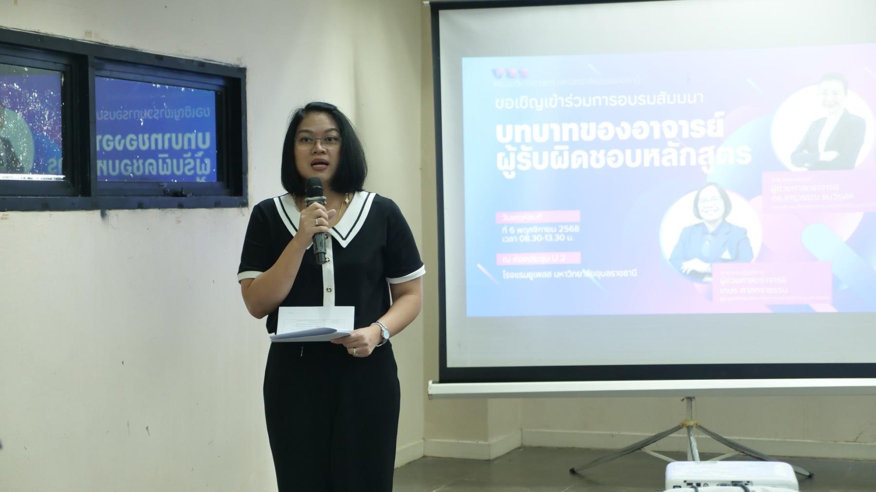 เมื่อวันพฤหัสบดีที่ 6 พฤศจิกายน 2568 คณะบริหารศาสตร์ มหาวิทยาลัยอุบลราชธานี จัดการอบรมสัมมนาเชิงวิชาการในหัวข้อ “บทบาทของอาจารย์ผู้รับผิดชอบหลักสูตร” ณ ห้องประชุม U2 โรงแรมยูเพลส มหาวิทยาลัยอุบลราชธานี โดยมี ผู้ช่วยศาสตราจารย์ ดร.อุทัย อันพิมพ์ คณบดีคณะบริหารศาสตร์ เป็นประธานในพิธีเปิดการอบรม