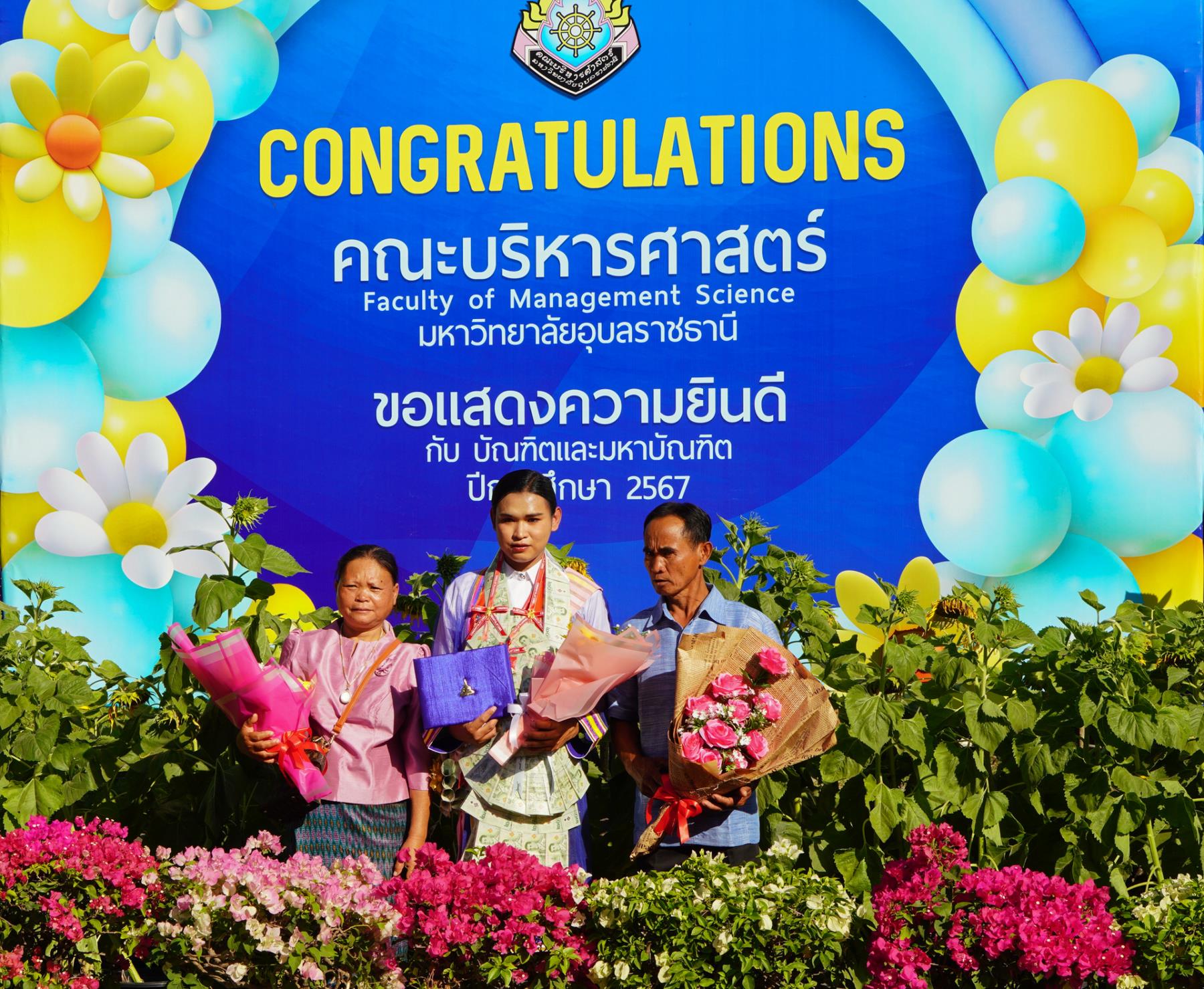 ประมวลภาพถ่ายบรรยากาศการต้อนรับและแสดงความยินดีกับบัณฑิต คณะบริหารศาสตร์ ในพิธีพระราชทานปริญญาบัตรแก่บัณฑิตมหาวิทยาลัยอุบลราชธานี ประจำปีการศึกษา 2567 ณ อาคาร MS วันที่ 24 ธันวาคม 2568