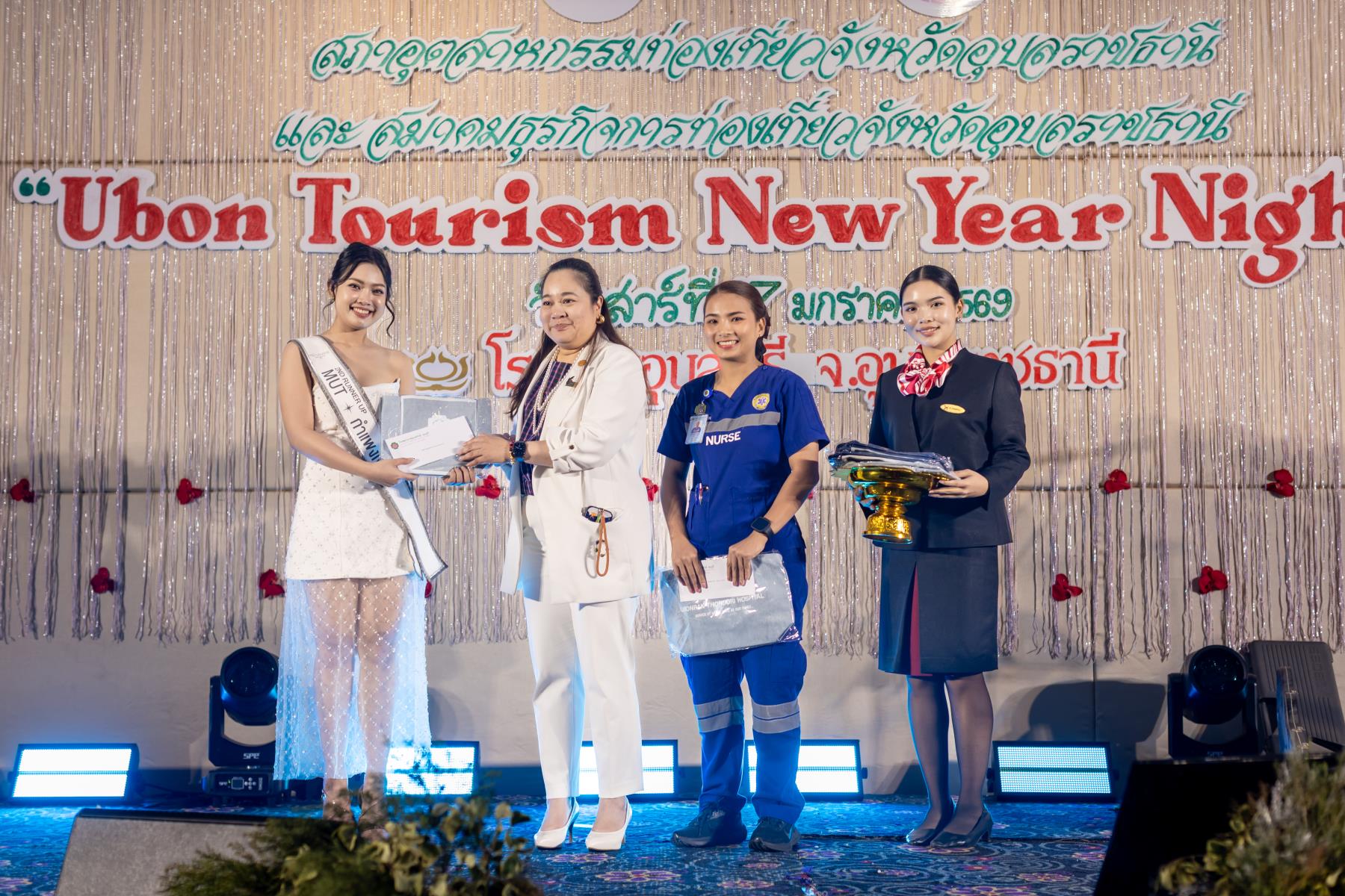พร้อมด้วยนักศึกษาสาขา นวัตกรรมการจัดการโรงแรมและการบริการ คณะบริหารศาสตร์ มหาวิทยาลัยอุบลราชธานี เข้าร่วมงานพบปะสังสรรค์ของผู้ประกอบการด้านการท่องเที่ยวและบริการ ซึ่งจัดขึ้นโดย สภาอุตสาหกรรมท่องเที่ยวจังหวัดอุบลราชธานี ร่วมกับสมาคมธุรกิจท่องเที่ยวจังหวัดอุบลราชธานี ภายใต้ชื่องาน Ubon Tourism New Year Night 2026